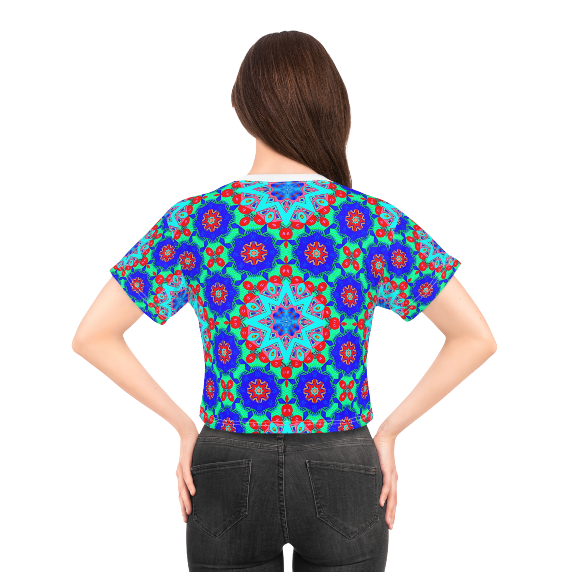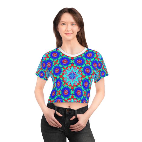 Blue Red Party Stars Crop Tee (AOP)