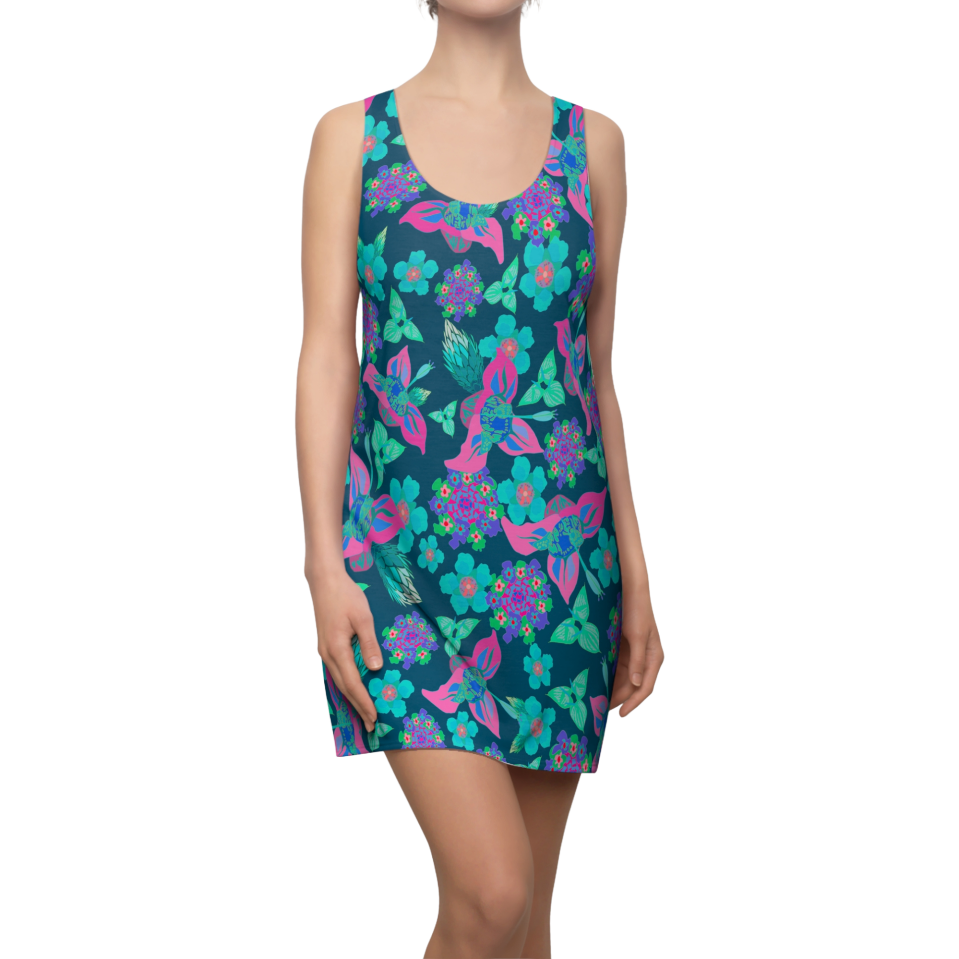 A feminine and stylish, yet really comfortable dress. This high quality AOP racerback dress is appealing from every angle. Inspired by the freedom of creativity, it will instantly become everyone's alltime favorite.