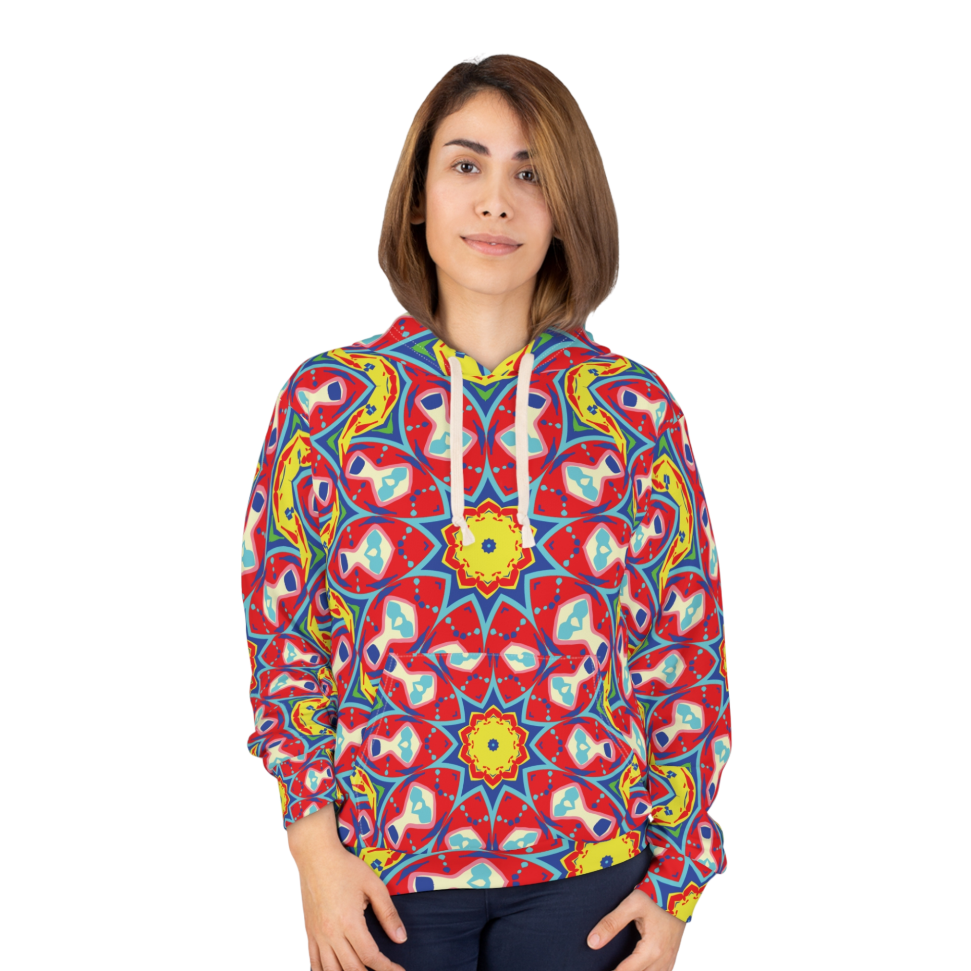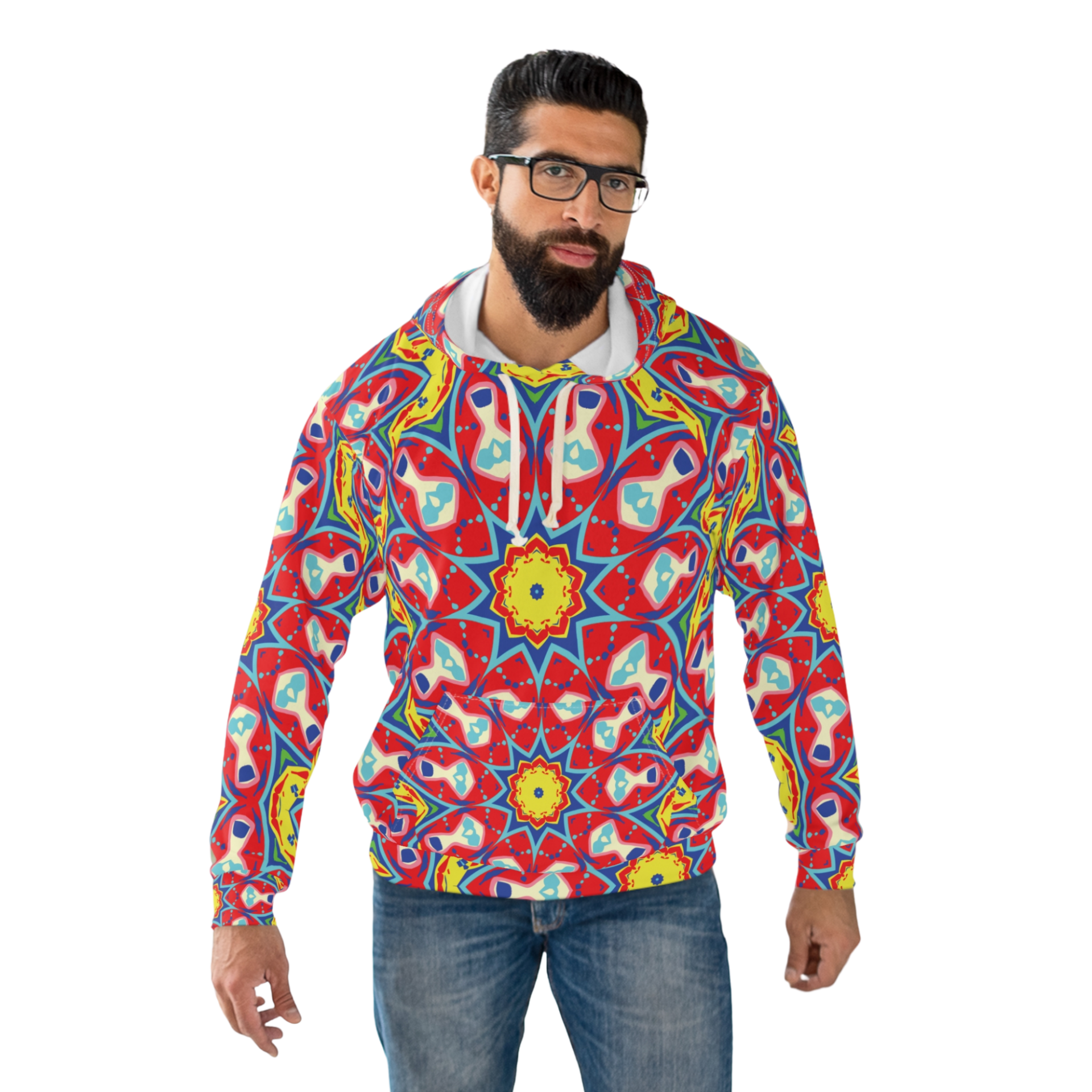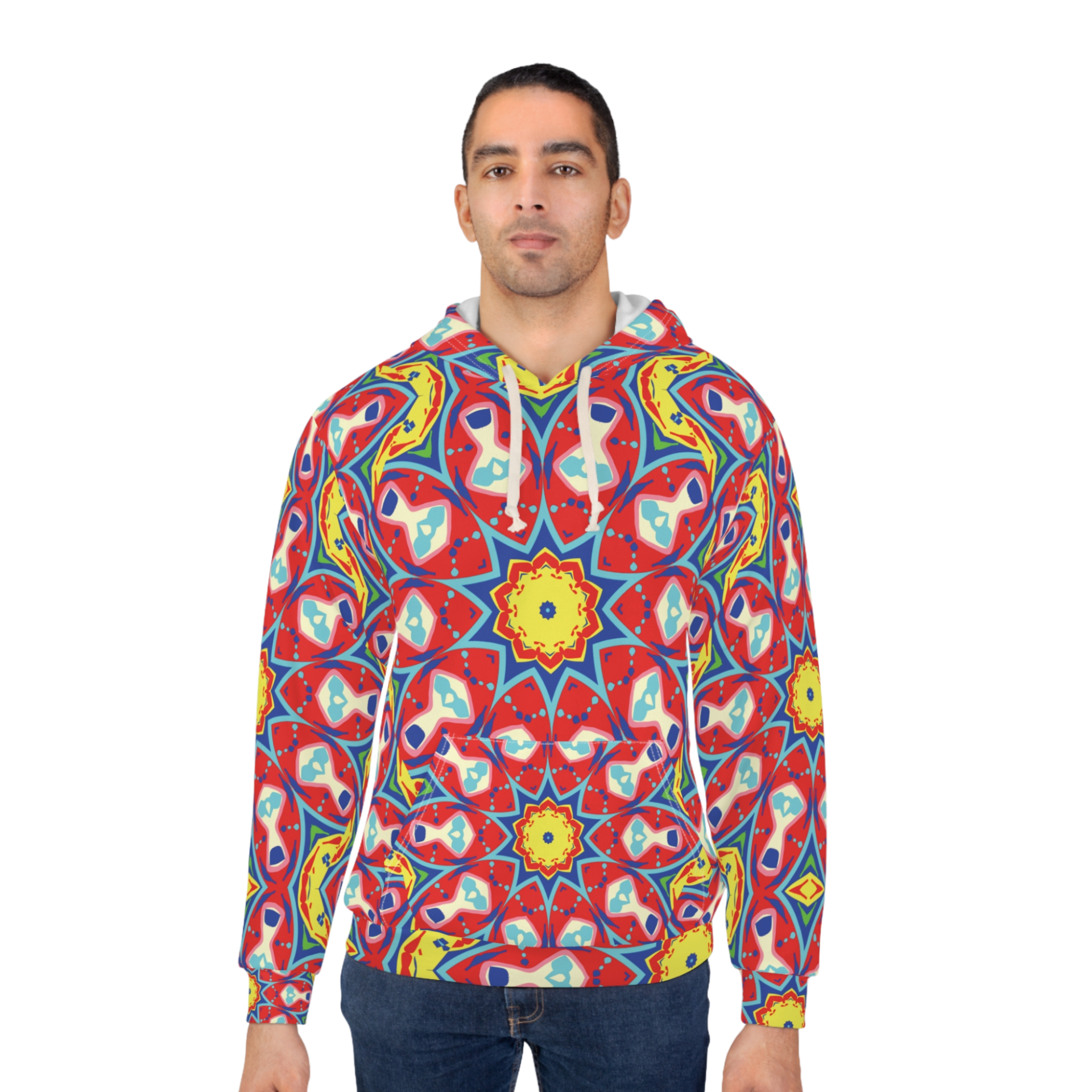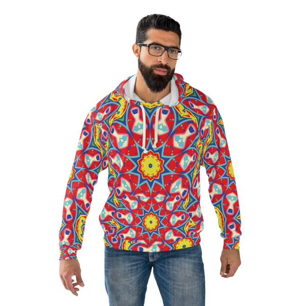 Red Yellow Floral Star Unisex Pullover Hoodie (AOP)